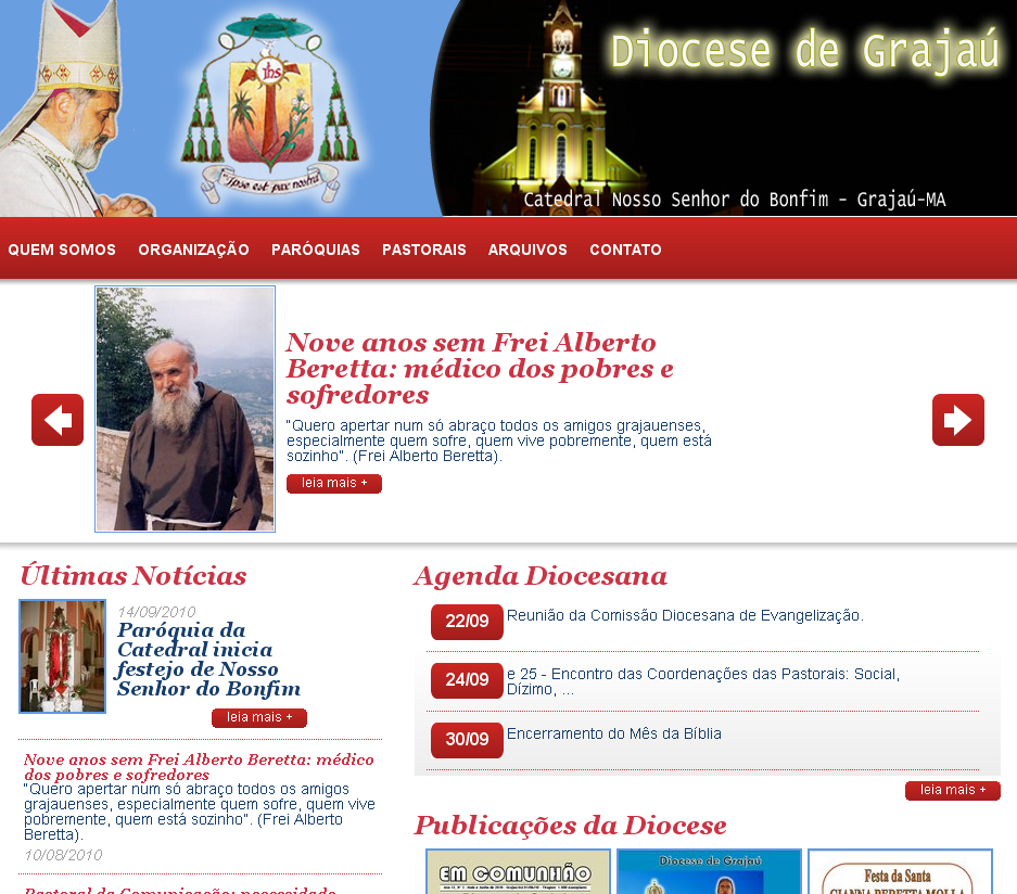 Entrou no ar, neste domingo, 19, o novo site da diocese de Grajaú. Moderna, a página apresenta um layout (desenho) inovador e tem a novidade das mídias sociais agregadas (twitter, facebook, Orkut, blog e picasa).